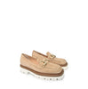 Suede loafers from Laura Bellariva. A round-curved form toe, slip-on design. Massive lightweight chain detail. Leather lining. Finished with vintage suede effect. Lightweight rubber sole.