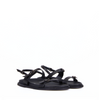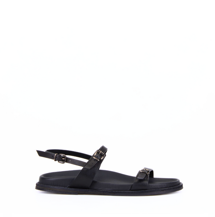 Leather sandals in black with decorative details from Fruit. A round-open toe, slip-on design, and buckle closure. Leather lining. Rubber sole.
