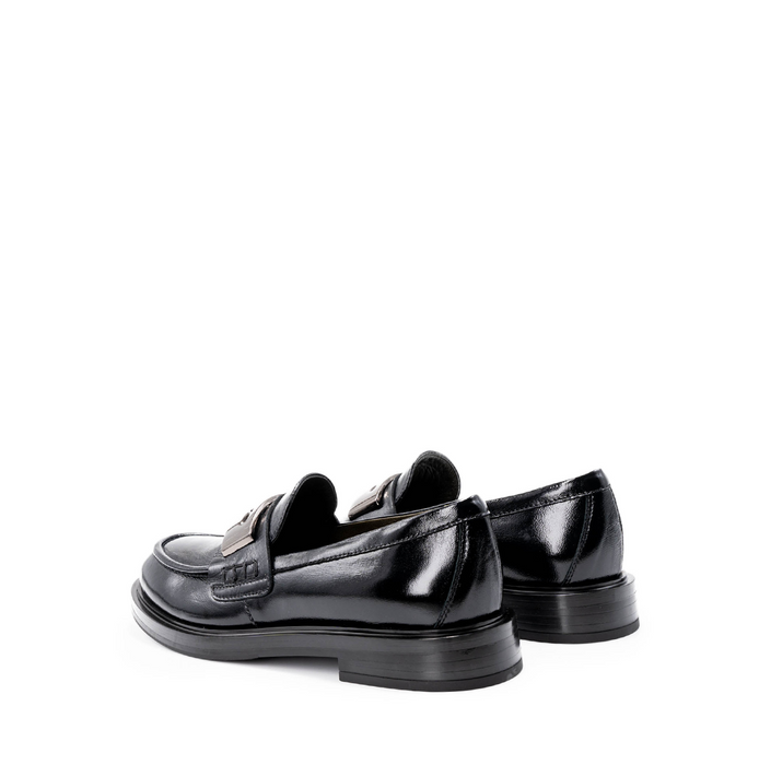 Shiny leather loafers in black from Laura Bellariva. A round-toe, slip-on design. Decorative detail. Leather lining, rubber sole.