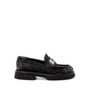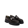 Suede loafers in brown from Laura Bellariva. A round-toe, slip-on design. Decorative embellishment. Leather lining, rubber sole.