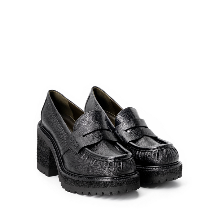 Grained leather pumps in black from Laura Bellariva. A round-toe, slip-on design. Leather lining. Decorative embellishment. Rubber sole.