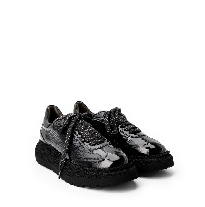 Patent leather sneakers in black from Laura Bellariva. A round-toe, lace-up closure. Leather details at the back. Leather lining, rubber sole.