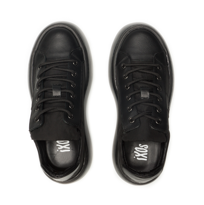Leather and technical nylon lace-up shoes in black from Ixos. A round toe, lace-up closure. Leather lining, rubber sole.
